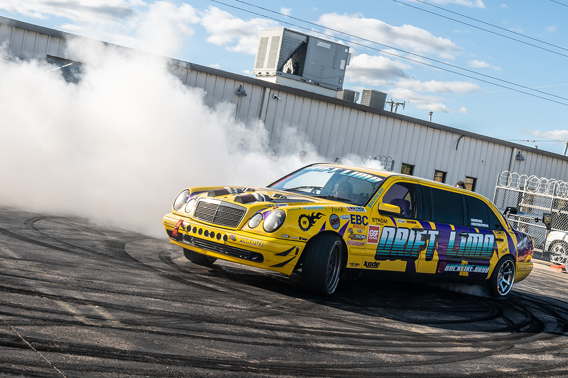 “We wanted to give the Road2SEMA team a proper Texas welcome,” said Rawlings. “They rolled in with serious energy and turned the yard into a celebration of international car culture.” The visit featured impromptu demonstrations from several standout vehicles, including an all-wheel-drive twin-turbo Lamborghini and a twin-turbo LS3-powered (with 6 bucket seats!), Mercedes-Benz limousine, both captivating spectators with tire smoke and precision driving. Rawlings described one display as “one of the tightest donuts ever done at GMG.”